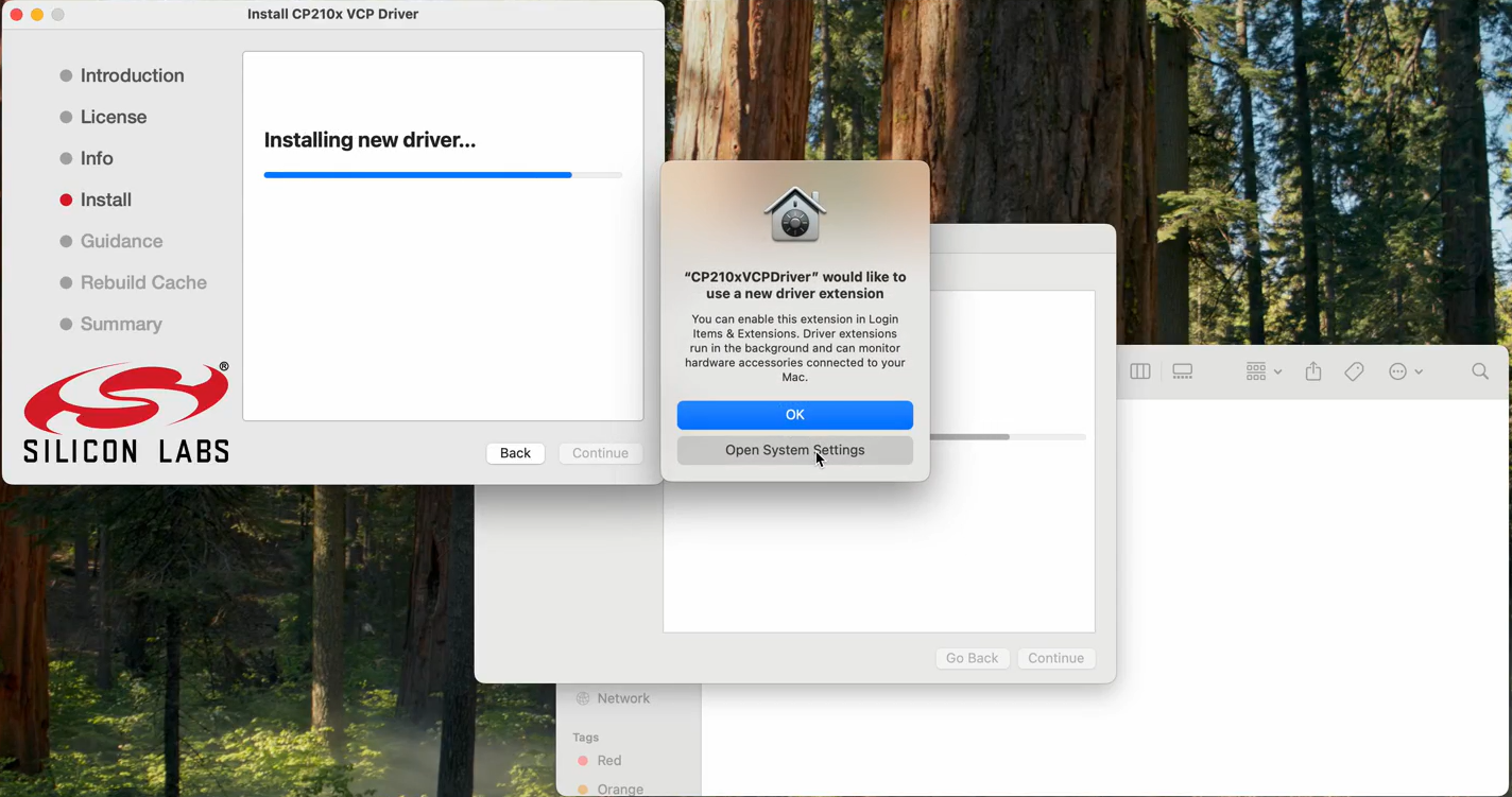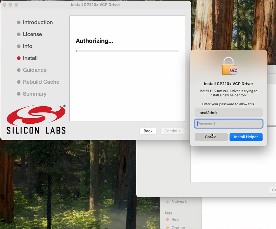 6. Once you have authorized the files to install, another screen will open requesting you to install the CP210x VCP driver as shown below: