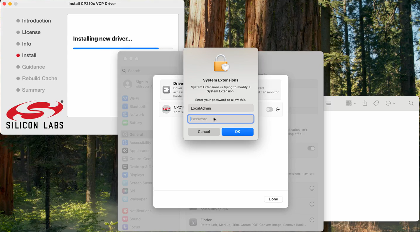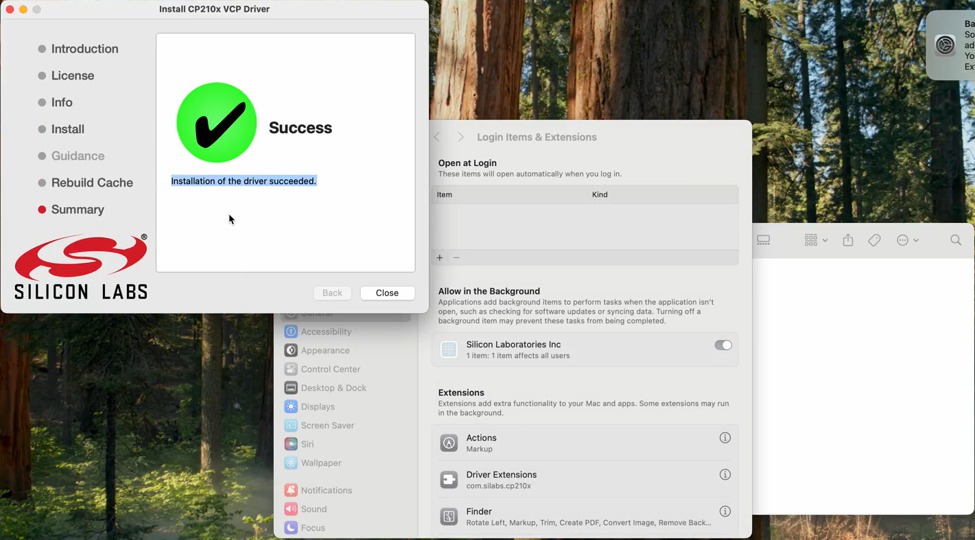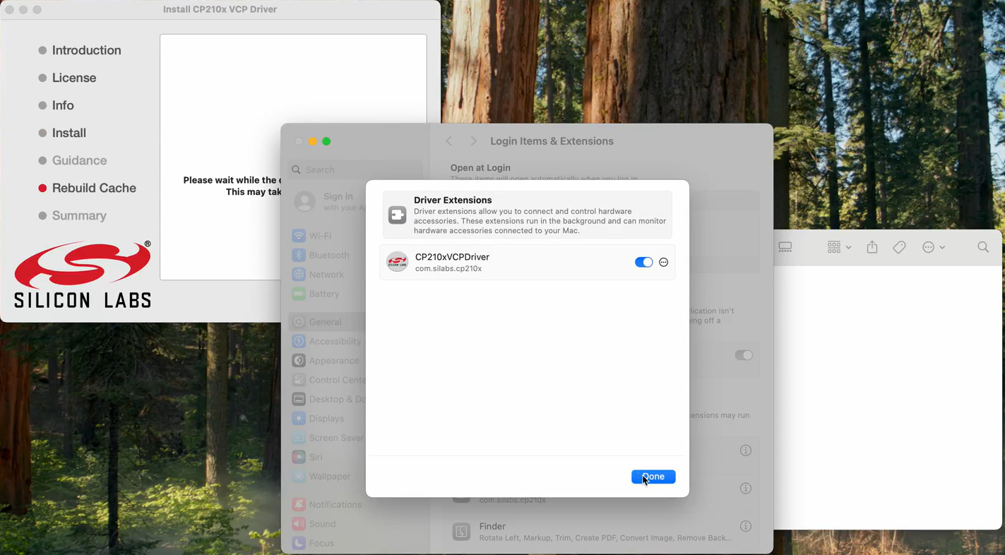 12. Once you enter your information, you can select “Done” which will close the pop up. Once this is closed you will see that the installation of the CP210x drivers have successfully processed (denoted by a large green check mark).