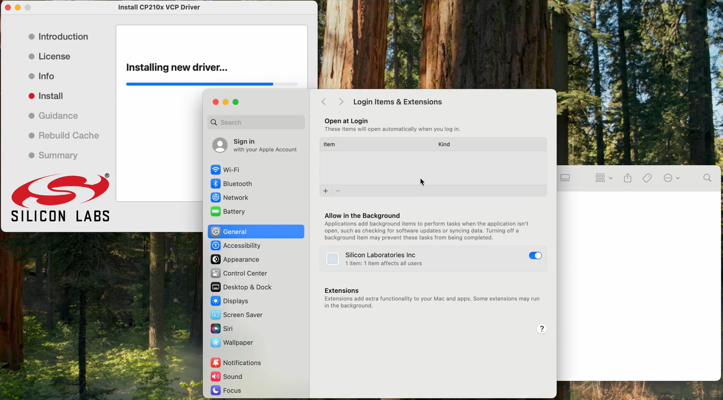 NOTE: If you do not see this automatically pop-up, and are experiencing freezing, or there is a loading pinwheel, manually go into SYSTEM SETTINGS followed by GENERAL --> LOGIN ITEMS AND EXTENSIONS --> DRIVER EXTENSIONS (select the