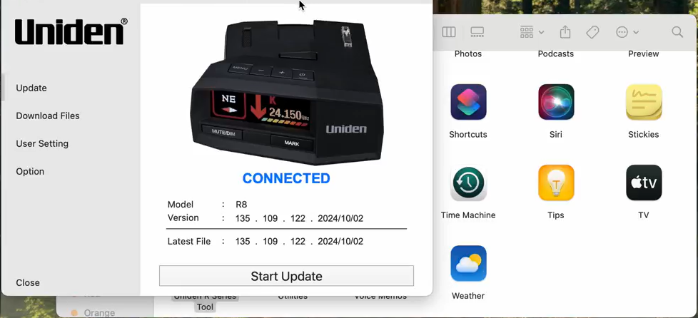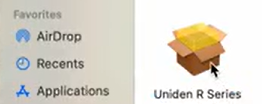 13.Now that the files have successfully been installed, press the close button and then go into the applications section in your favorite's menu. Once in the menu you need to scroll down to find the “Uniden R Series Tool” file as shown below: